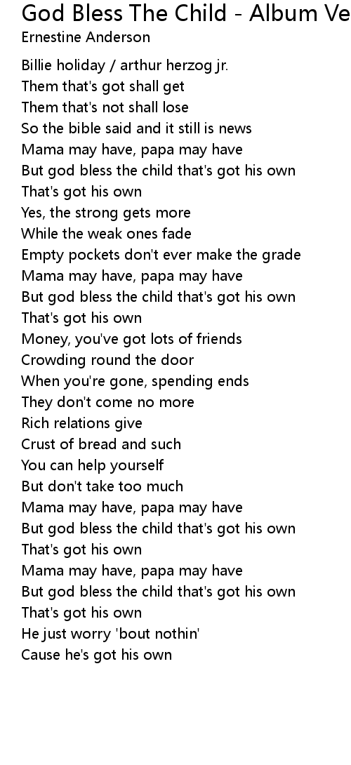 God Bless The Child - Album Version Lyrics