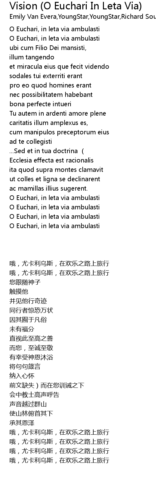 | [03:10.00] | O Euchari, in leta via ambulasti |