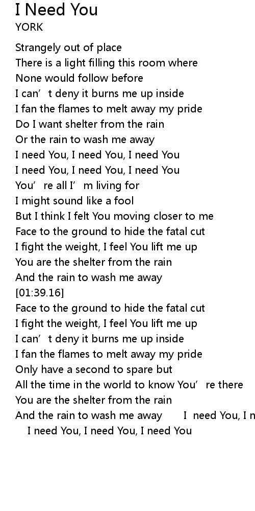 | [00:50.45] | I need You, I need You, I need You |