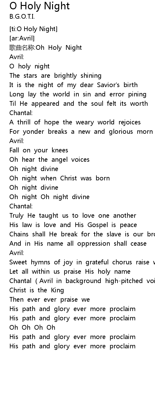 | [00:02.05] | gē qǔ míng chēng: Oh Holy Night |