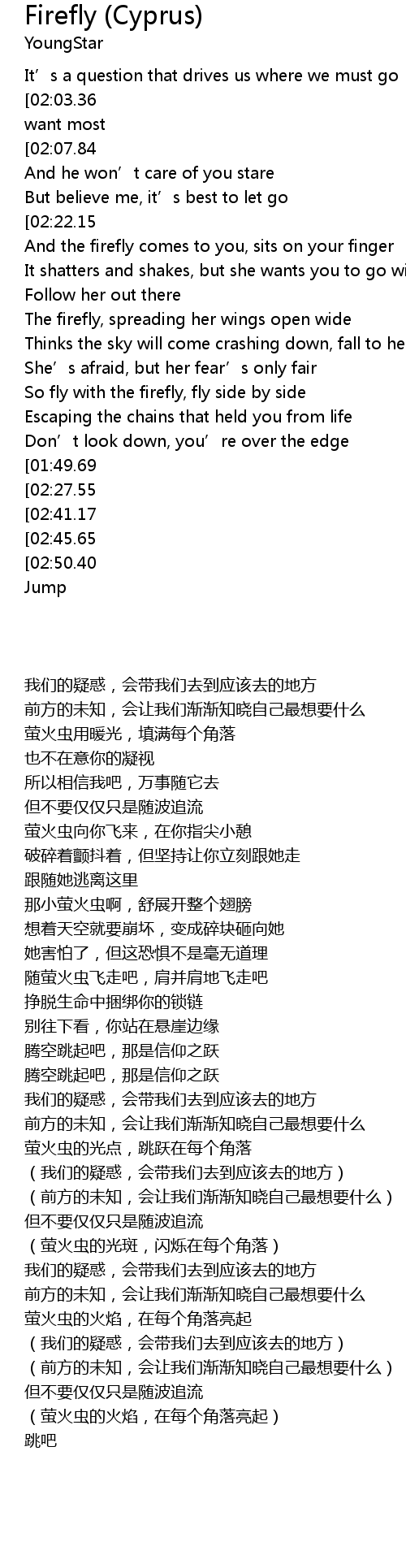 | [02:22.22][02:50.40] | (But the firefly sits in the corner and rests) |