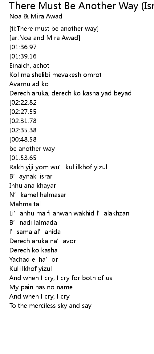 | [00:05.83][01:39.16][02:51.50] | Must be another way |