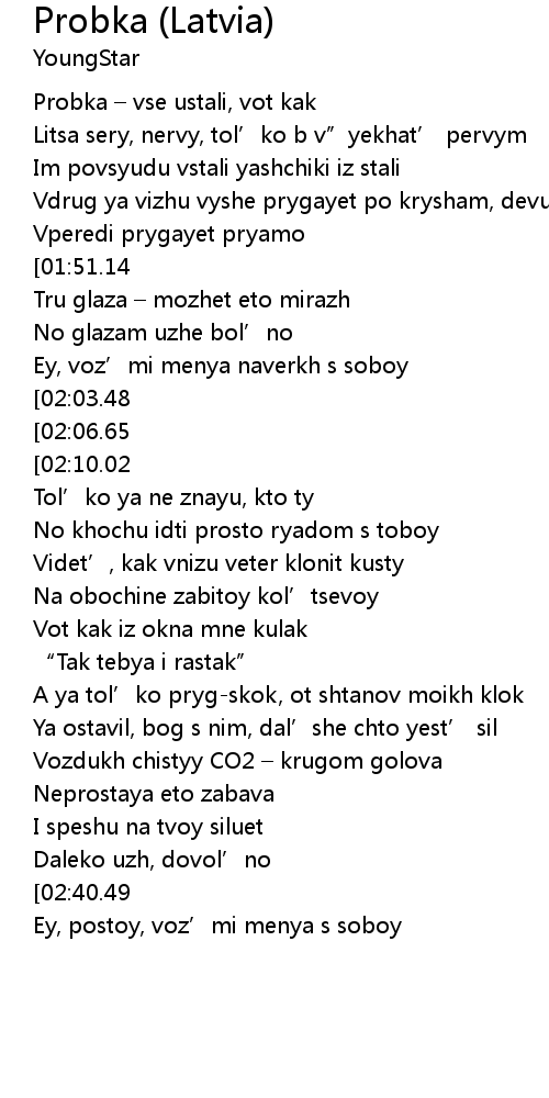 | [00:06.36] | Probka – vse ustali, vot kak |