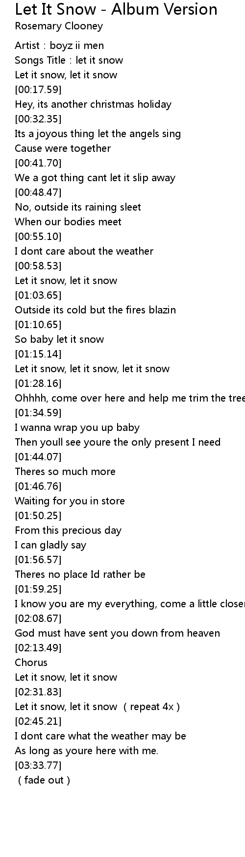 | [02:36.07] | Let it snow, let it snow (repeat 4x) |