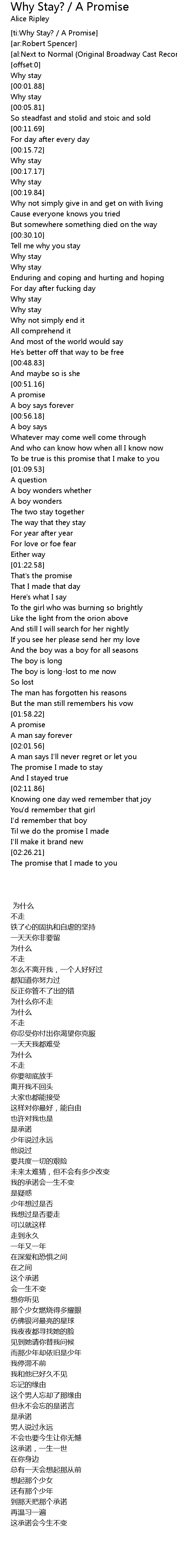 [ti:Why Stay? / A Promise] |