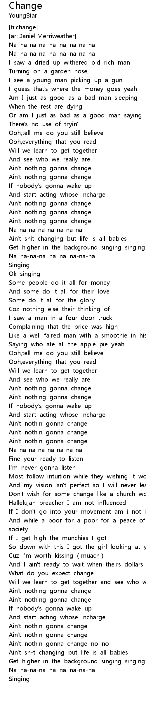 | [03:03.79] | Ain' t nothin gonna change no no |