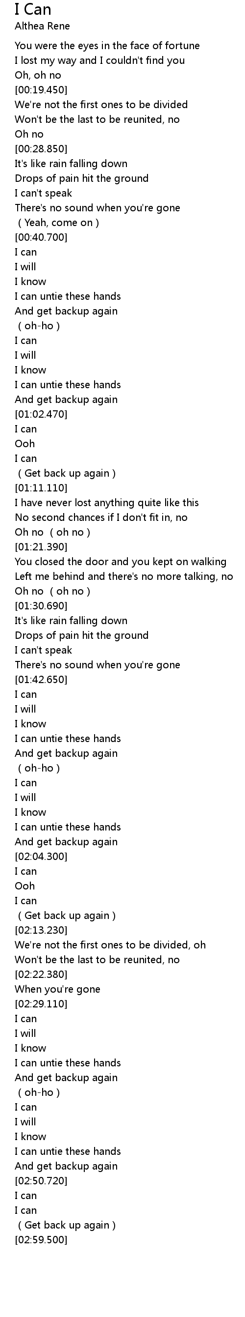 | [01:14.560] | No second chances if I don' t fit in, no |