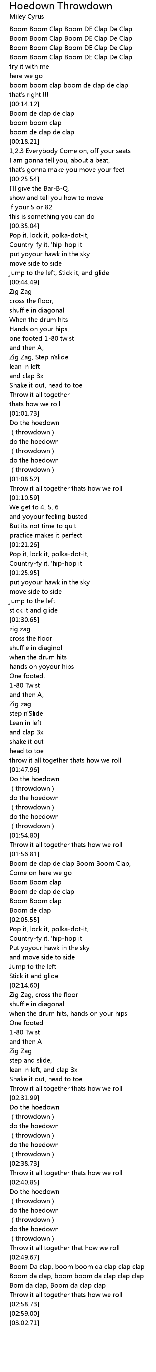 | [01:02.05] | Do the hoedown |