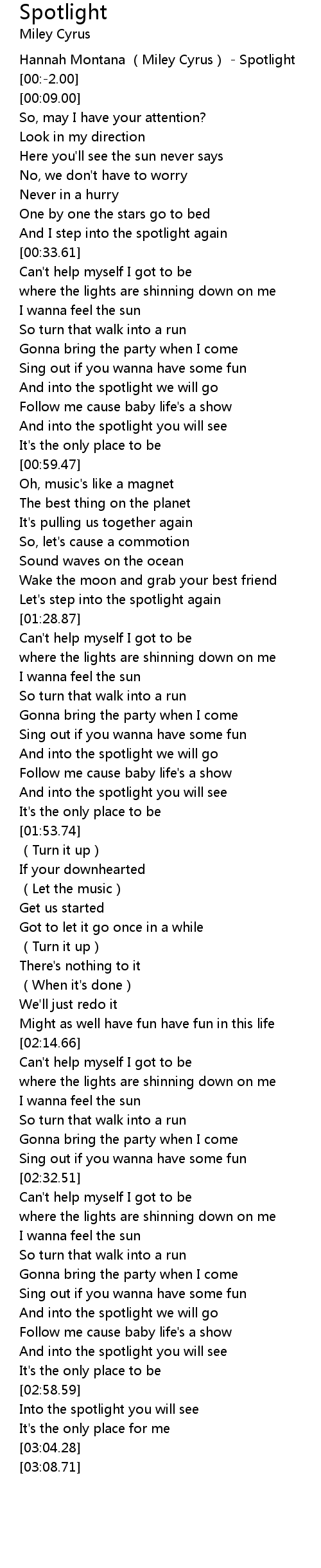 | [00:-3.00] | Hannah Montana (Miley Cyrus) - Spotlight |