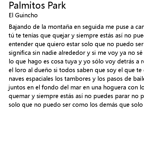 | Bajando de la monta a en seguida me puse a cantar una cancio n sin motivo pero tu te teni as que quejar y siempre esta s asi no puedes parar no puedes entender que quiero estar solo que no puedo ser como los dema s que solo significa sin nadie alrededor y si me voy ya no se co mo vas a poder decir que lo que hago es cosa tuya y yo so lo voy detra s a repetir lo que digas tu como el loro al due o si todos saben que soy el que te ense a las historias de naves espaciales los tambores y los pasos de baile y en vez de estar nadando juntos en el fondo del mar en una hoguera con los cuentos de noche me queri as quemar y siempre esta s asi no puedes parar no puedes entender que quiero estar solo que no puedo ser como los dema s que solo significa sin nadie alrededor |