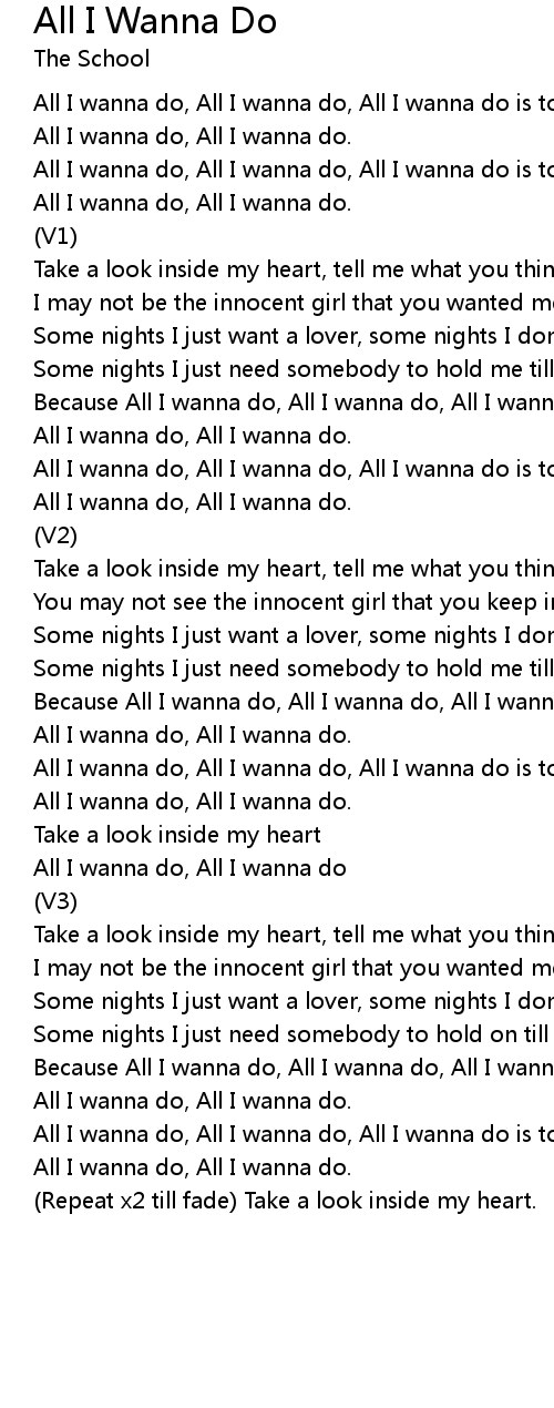 All I wanna do, All I wanna do, All I wanna do is touch you, |