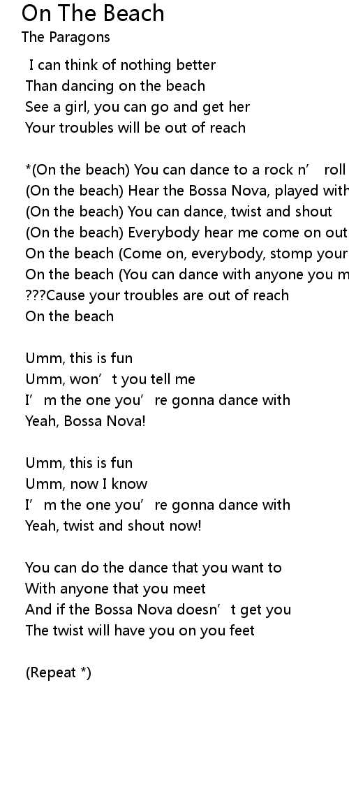 | (On the beach) Hear the Bossa Nova, played with soul | |