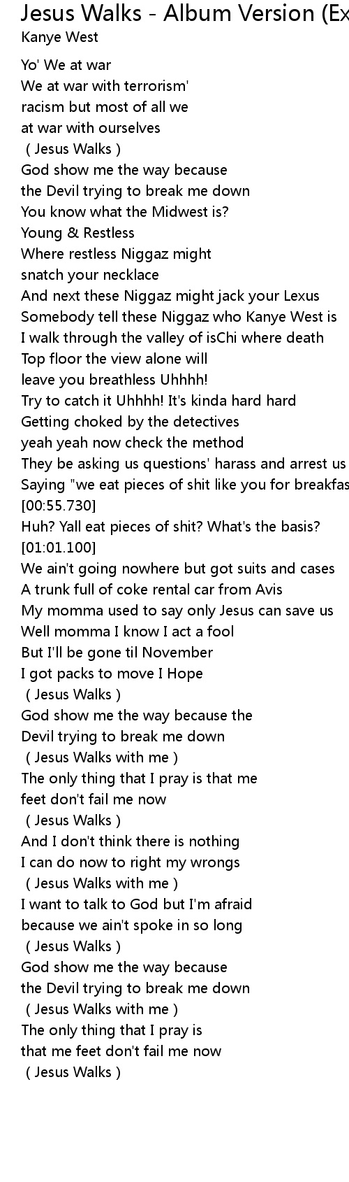 | [01:36.240] | (Jesus Walks) |