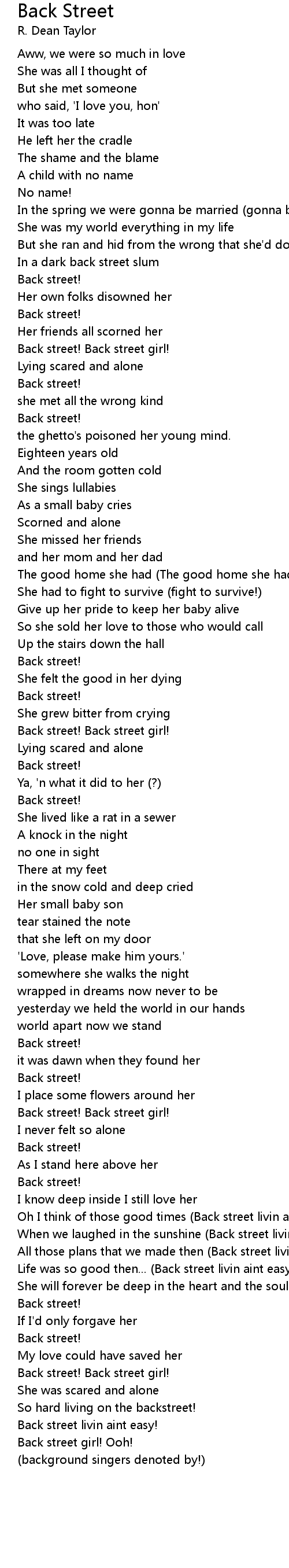 Back street girl! Ooh! |