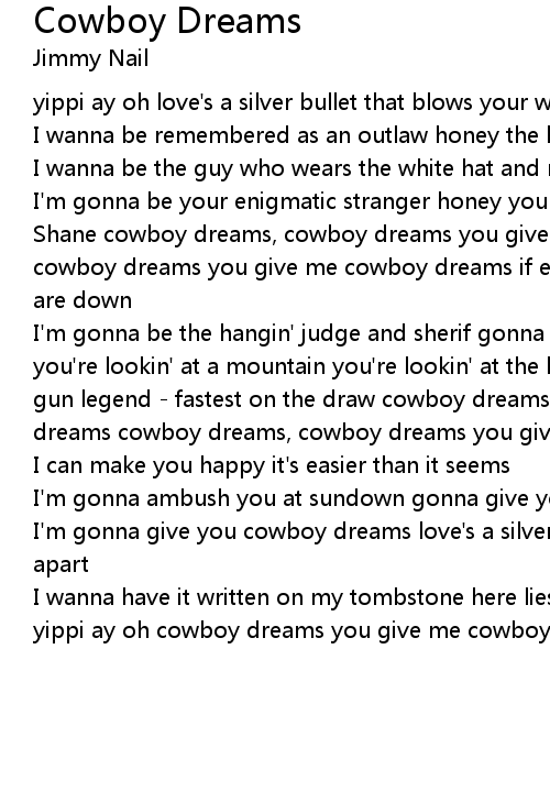 Shane cowboy dreams, cowboy dreams you give me cowboy dreams cowboy dreams, cowboy dreams you give me cowboy dreams if ever you're in trouble if ever you are down |