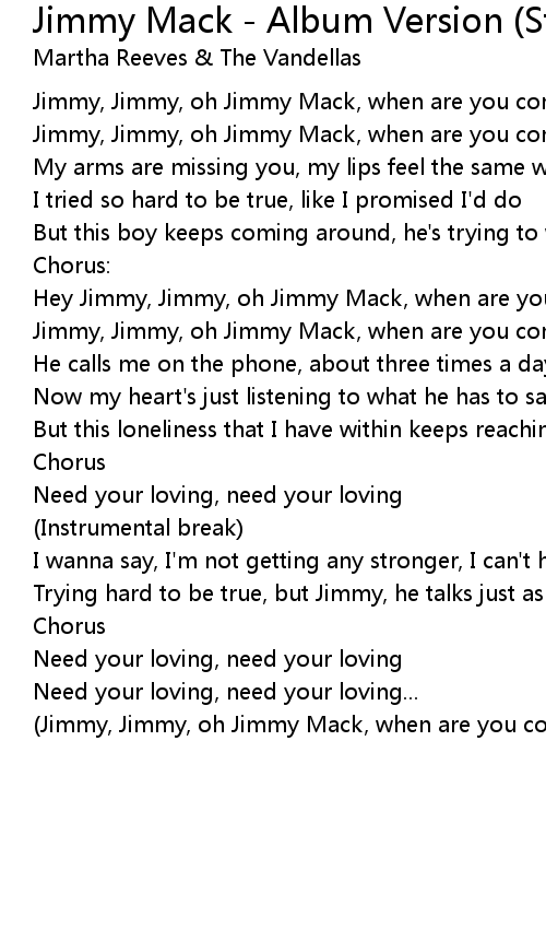 Jimmy Mack - Album Version (Stereo) Lyrics