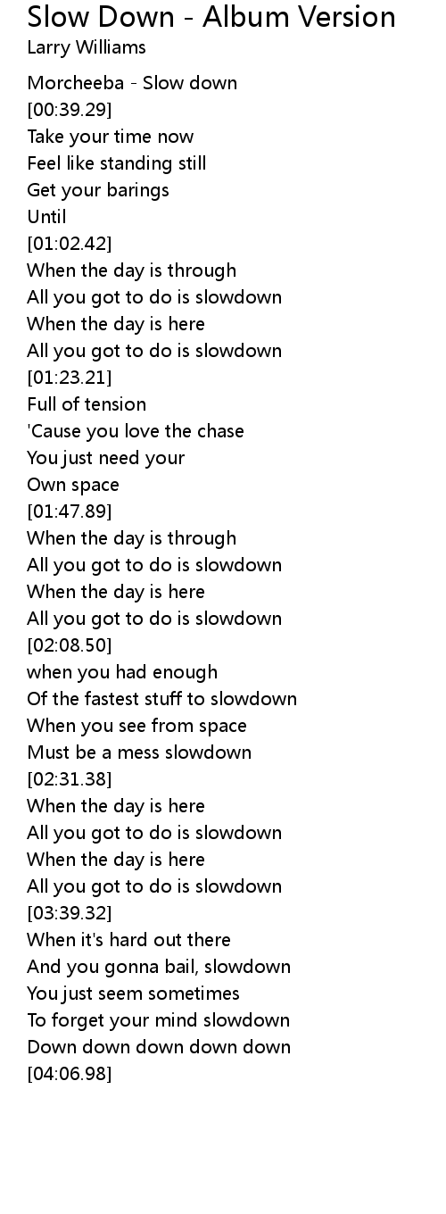 Slow Down - Album Version Lyrics