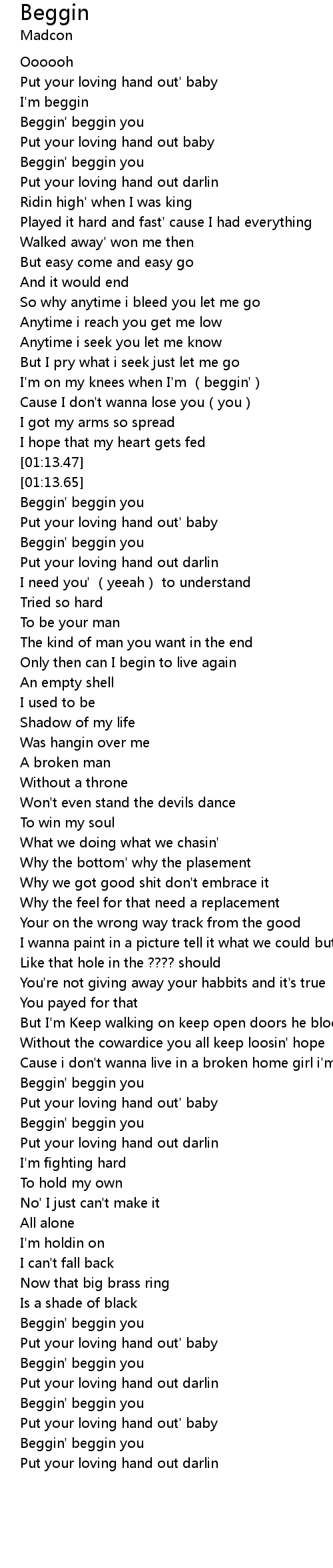 | [01:21.71] | Beggin' beggin you |