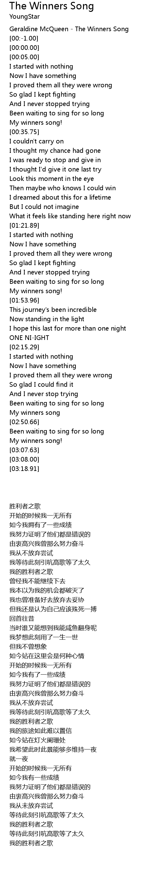 Geraldine McQueen - The Winners Song |