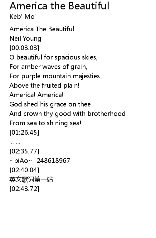 | [00:01.00] | America The Beautiful |