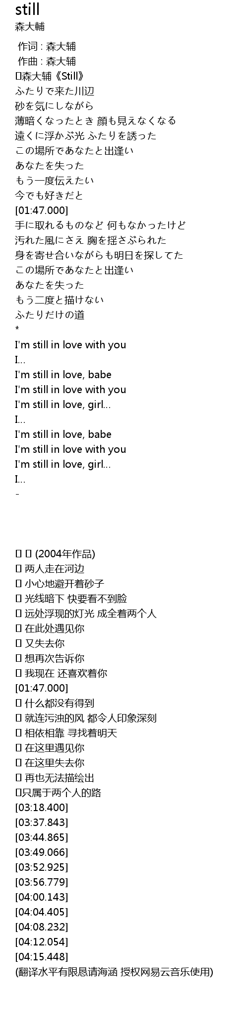 | [00:07.900] | ♪森大辅《Still》 |