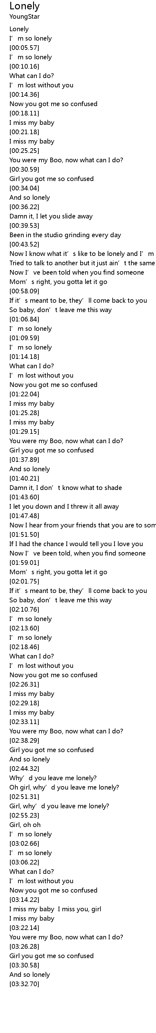 | [02:48.12] | Oh girl, why’d you leave me lonely? |