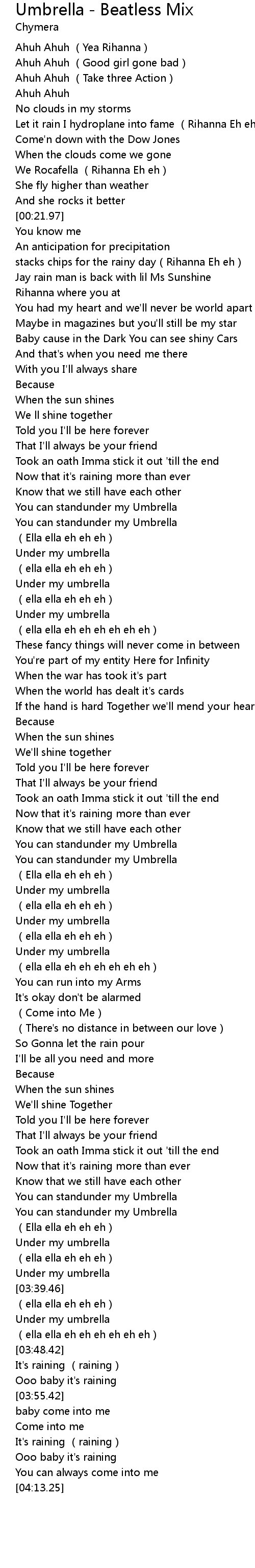 | [03:24.85] | You can standunder my Umbrella |