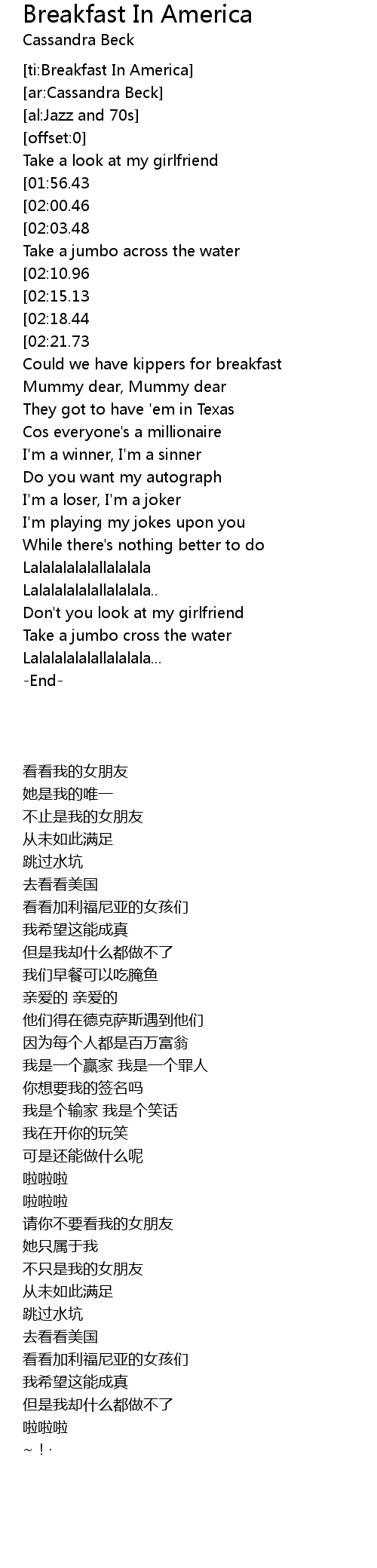 [ti:Breakfast In America] |