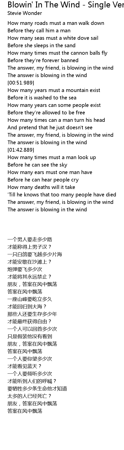| [00:43.998] | The answer is blowing in the wind |