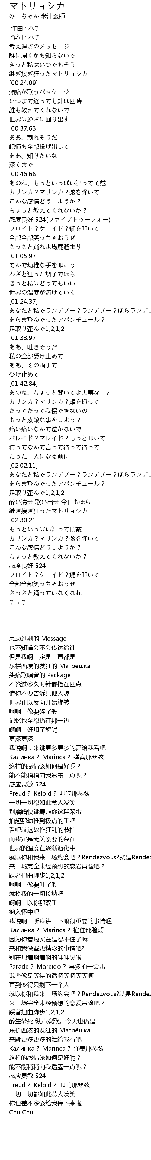 | [00:21.24] | 継ぎ接ぎ狂ったマトリョシカ |