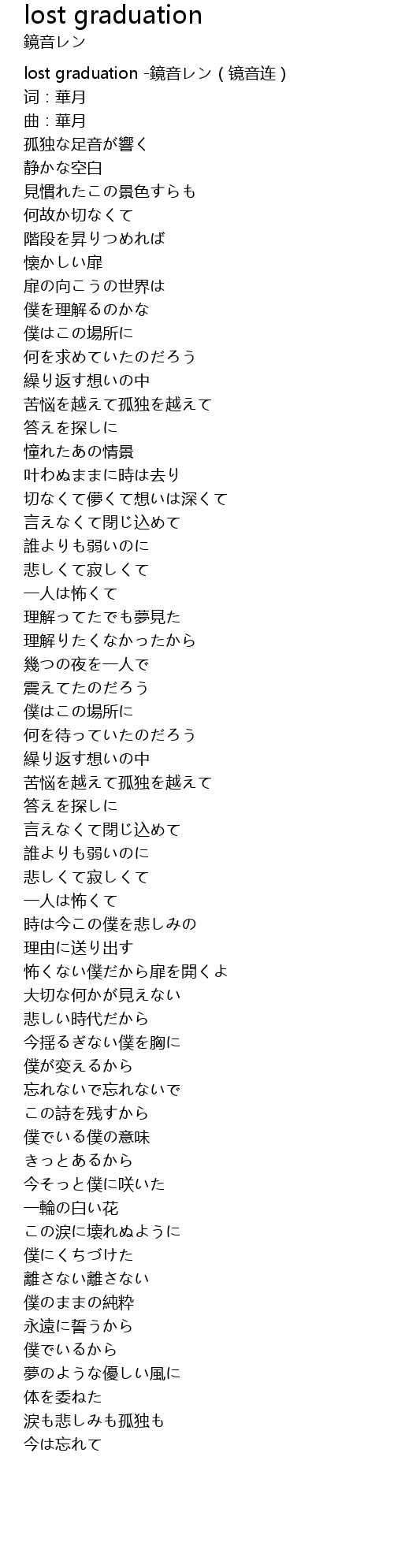| [00:00.296] | lost graduation -鏡音レン(镜音连) |