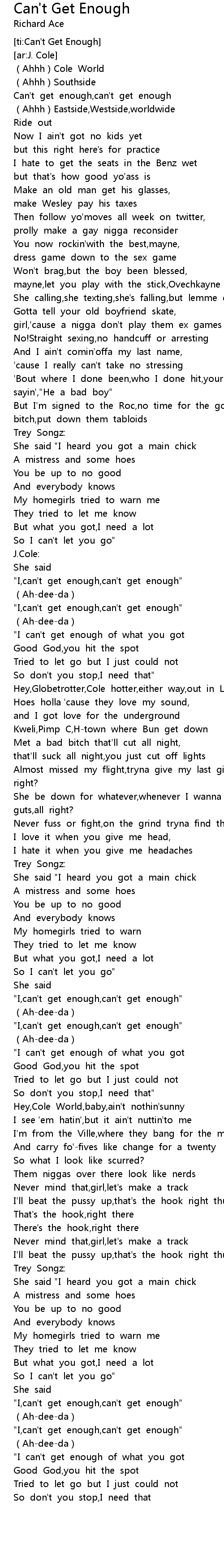 | [01:16.23] | " I, can' t get enough, can' t get enough" |
