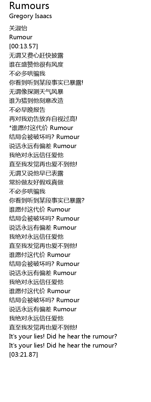 | [02:21.51] | 谁愿付这代价 Rumour |