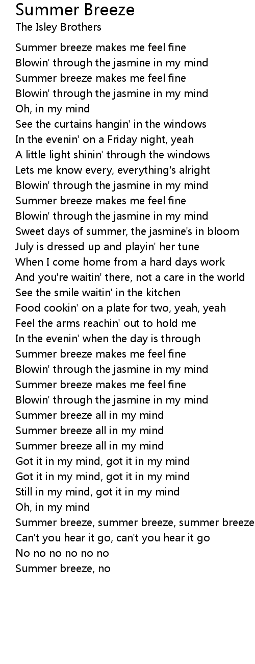 Summer breeze, summer breeze, summer breeze |