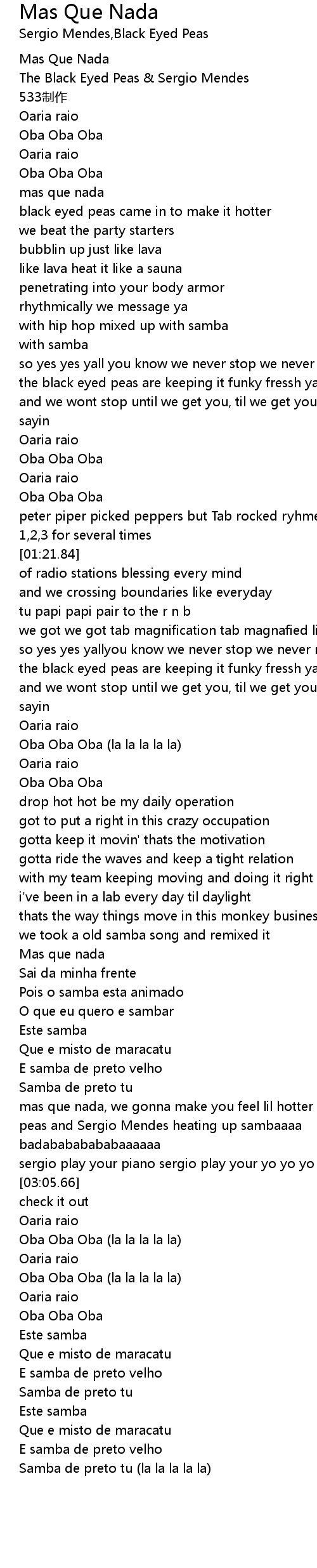 | [00:01.04] | Mas Que Nada |