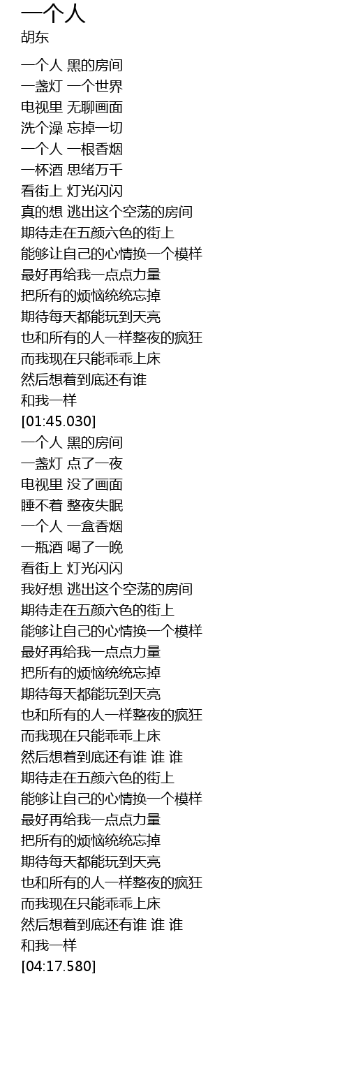 | [02:04.570] | 一个人 黑的房间 |