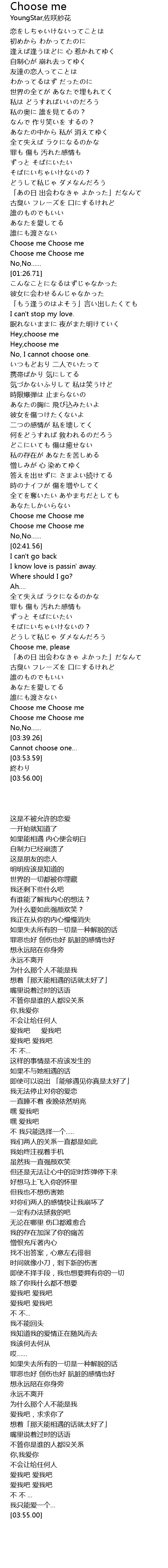 | [02:38.11] | Choose me Choose me |