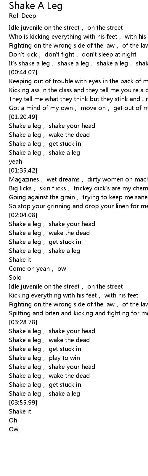 | [00:37.46] | It s shake a leg, shake a leg, shake a leg, shake it yeah |