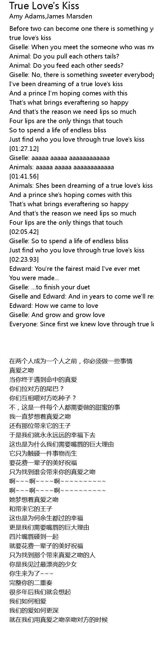 | [02:48.39] | Everyone: Since first we knew love through true love's kiss |