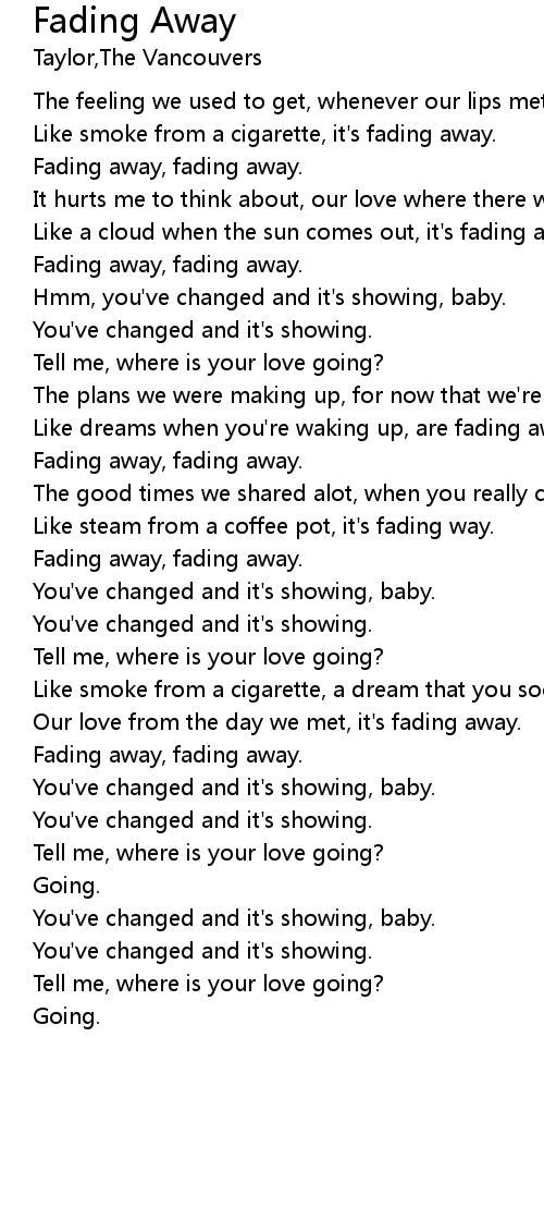 Fading away, fading away. |
