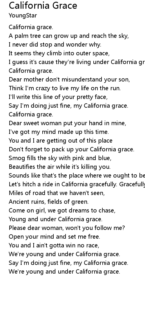 Say I'm doing just fine, my California grace. |