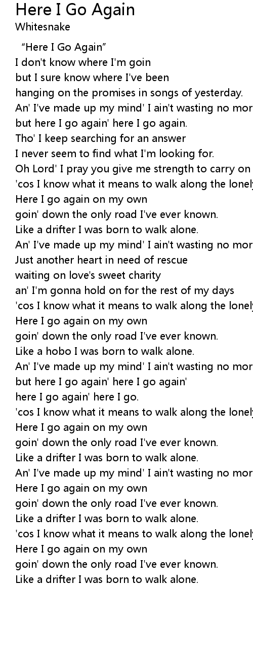| [00:01.53] | " Here I Go Again" |