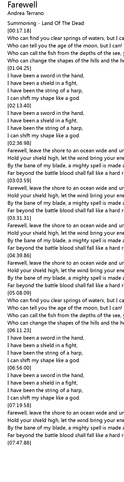 Farewell Lyrics