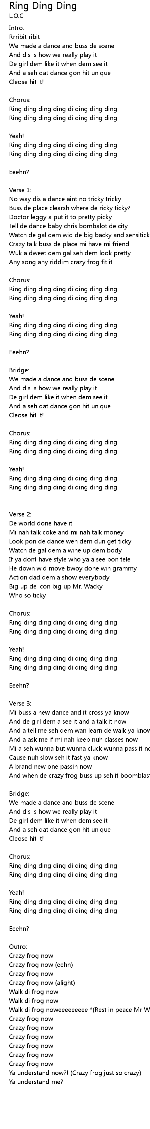 Any song any riddim crazy frog fit it |