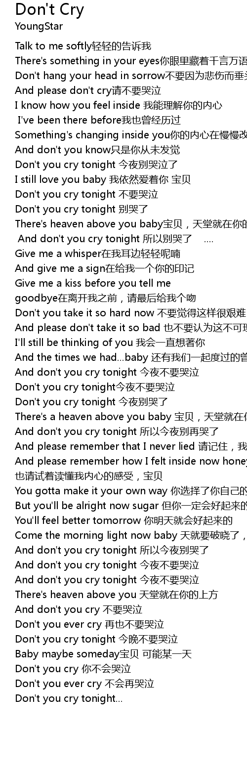 | Don' t you cry tonight jīn yè bié kū qì le | |