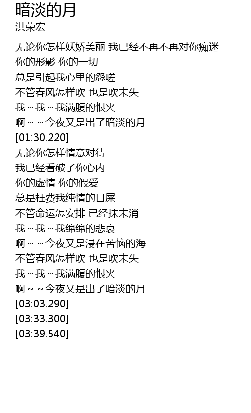 | [01:16.010] | 啊~~今夜又是出了暗淡的月 |