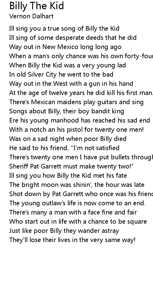 When Billy the Kid was a very young lad |