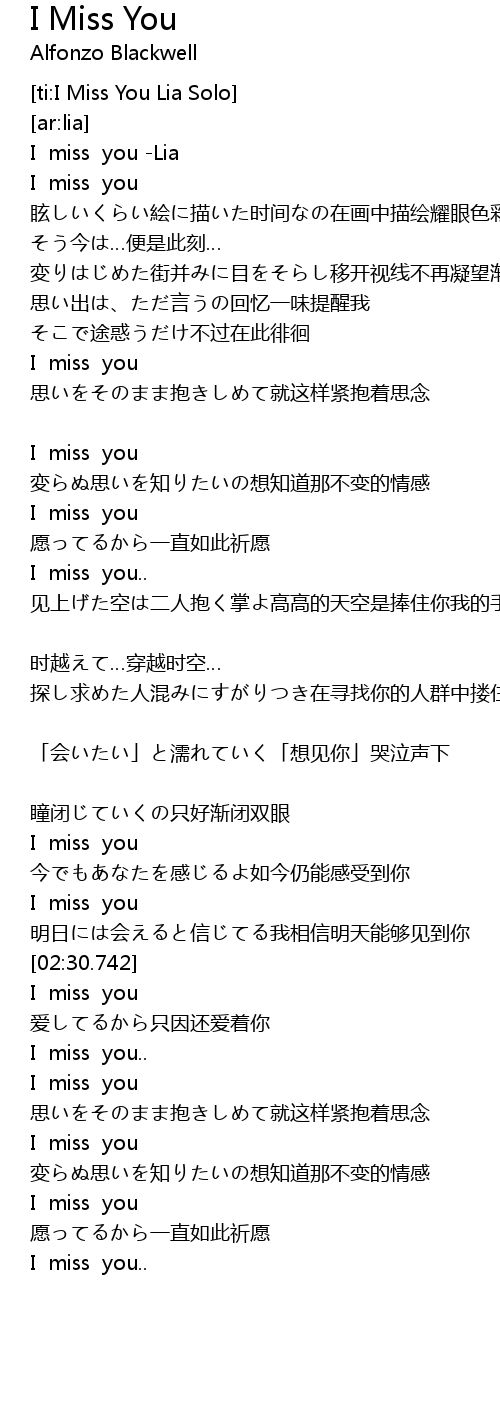 | [00:02.33] | I miss you -Lia |