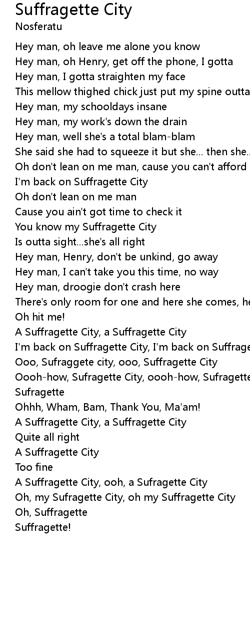 Oooh-how, Sufragette City, oooh-how, Sufragette City, oooh-how |