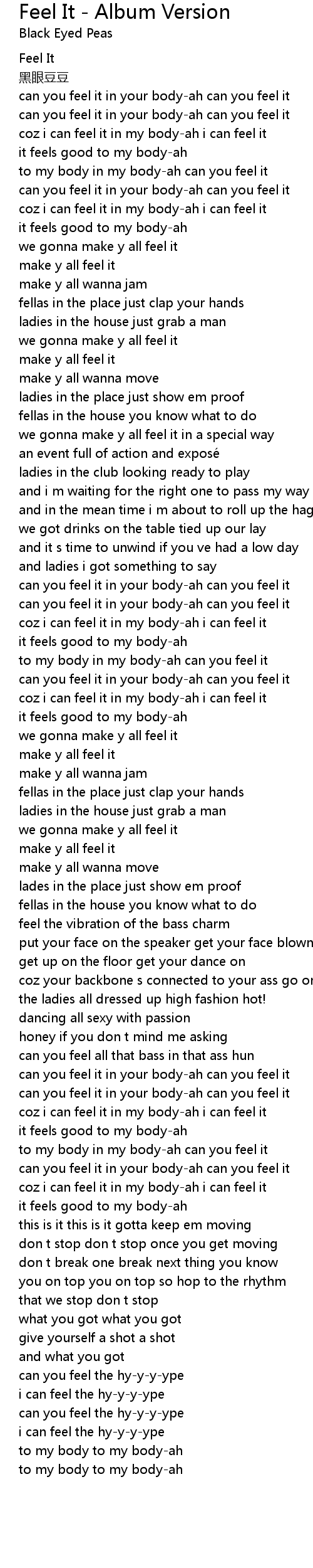 | [02:18.37] | coz i can feel it in my body-ah i can feel it |